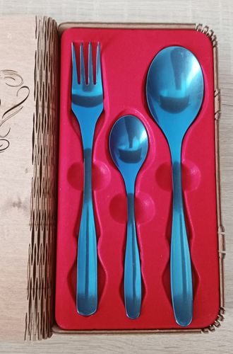 Эти ложки обработаны в ручную на гальванических установках. В зависимости от силы тока на поверхности титана образовалась тонкая пленочка оксида титана, что придает столовой посуде оригинальный и неповторимый вид.
